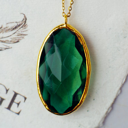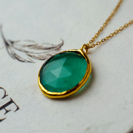 Csiszolt zöld üveg nyaklánc - goldie