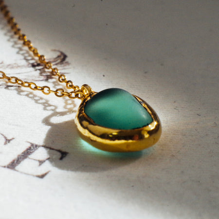 Csiszolt türkiz üveg nyaklánc - goldie