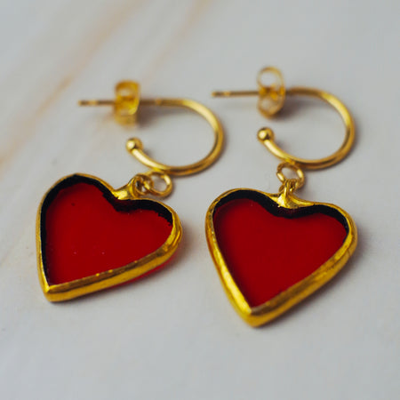 Piros üveg szív fülbevaló - goldie