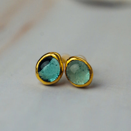 Türkiz sea glass fülbevaló - Goldie