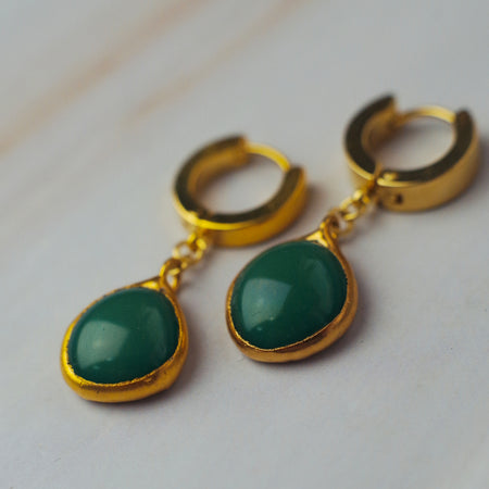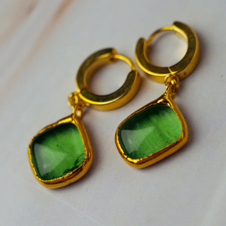 Rusztikus zöld üveg fülbevaló - goldie